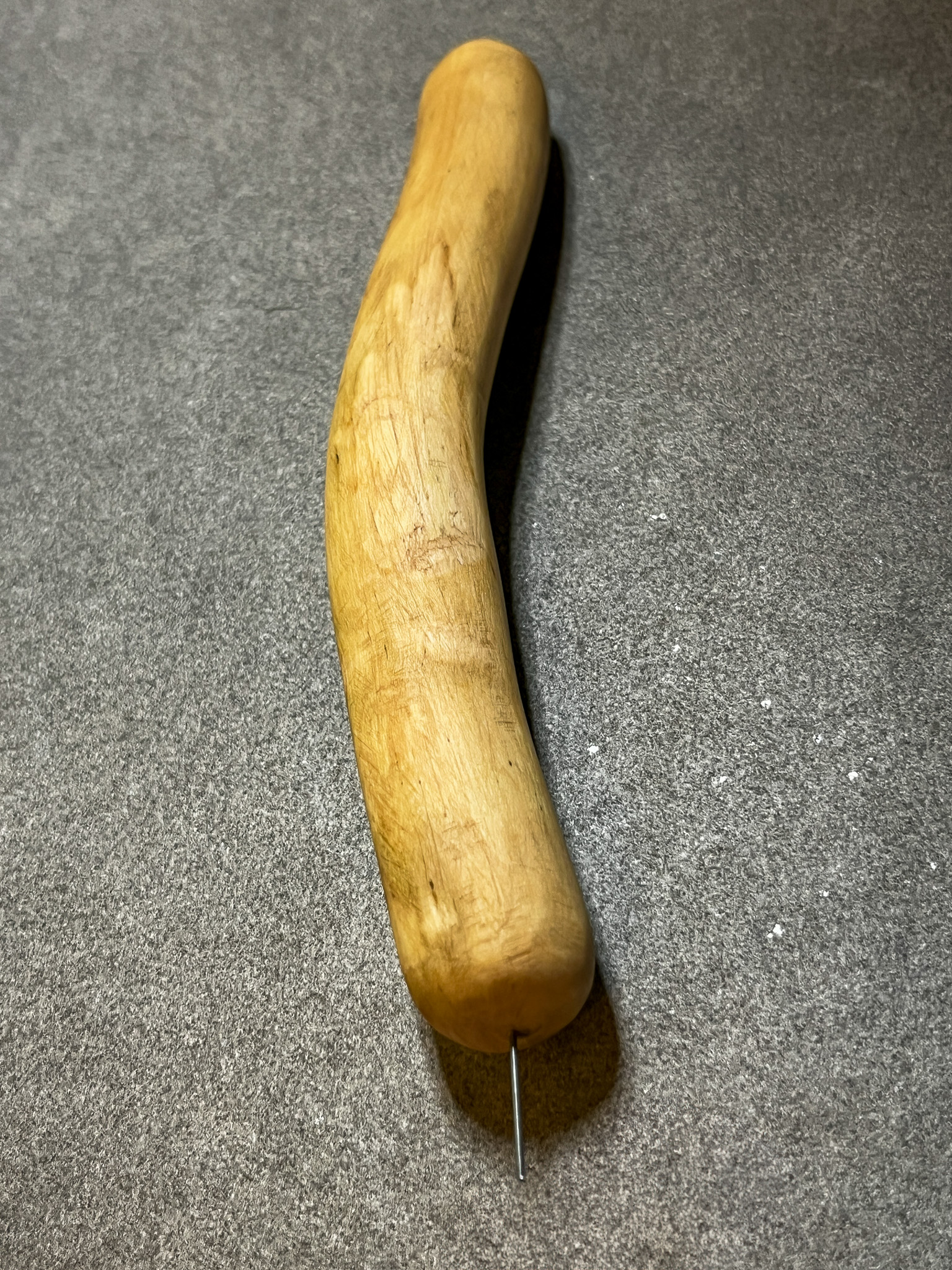 Hergestellt aus Efeu, stammt das Holz dieses Tensorgriffes aus einem kleine Ort am Rande des Steinfeldes, in Niederösterreich. Die von Hand geschliffene Oberfläche wurde mit einem natürlichen Mittel aus Bienenwachs und Kokosöl behandelt – das schützt das Holz vor Austrocknung und erzeugt eine warme, lebendige Oberfläche. Die hellen Flecken im Holz sind von Natur aus vorhanden und verleihen dem Griff eine dezente Besonderheit. Der Griff ist schmaler und länger als üblich, somit auch ideal für größere Hände. Die leicht gebogene Form liegt angenehm in der Hand.