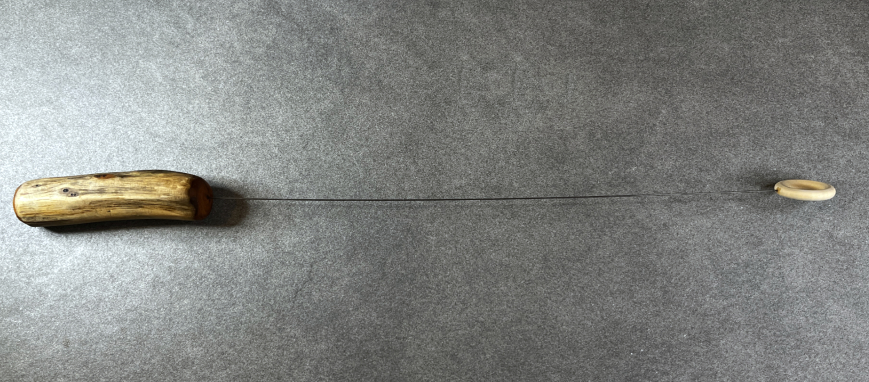 Diese Einhandrute besitzt einen zart geschwungenen Griff aus Eibenholz, von einem ca. 200 Jahre alten Baum aus den Tiroler Bergen. Der Griff wurde sorgfältig geschliffen und mit einem natürlichen Wachs aus Bienenwachs und Kokosöl behandelt. Das schützt das Holz vor Austrocknung, erzeugt eine warme, lebendige Oberfläche und lässt die natürliche Färbung gut hervortreten. Bei der Verarbeitung wurde wie immer bewusst darauf geachtet, die besondere Qualität des Holzes hervorzuholen.