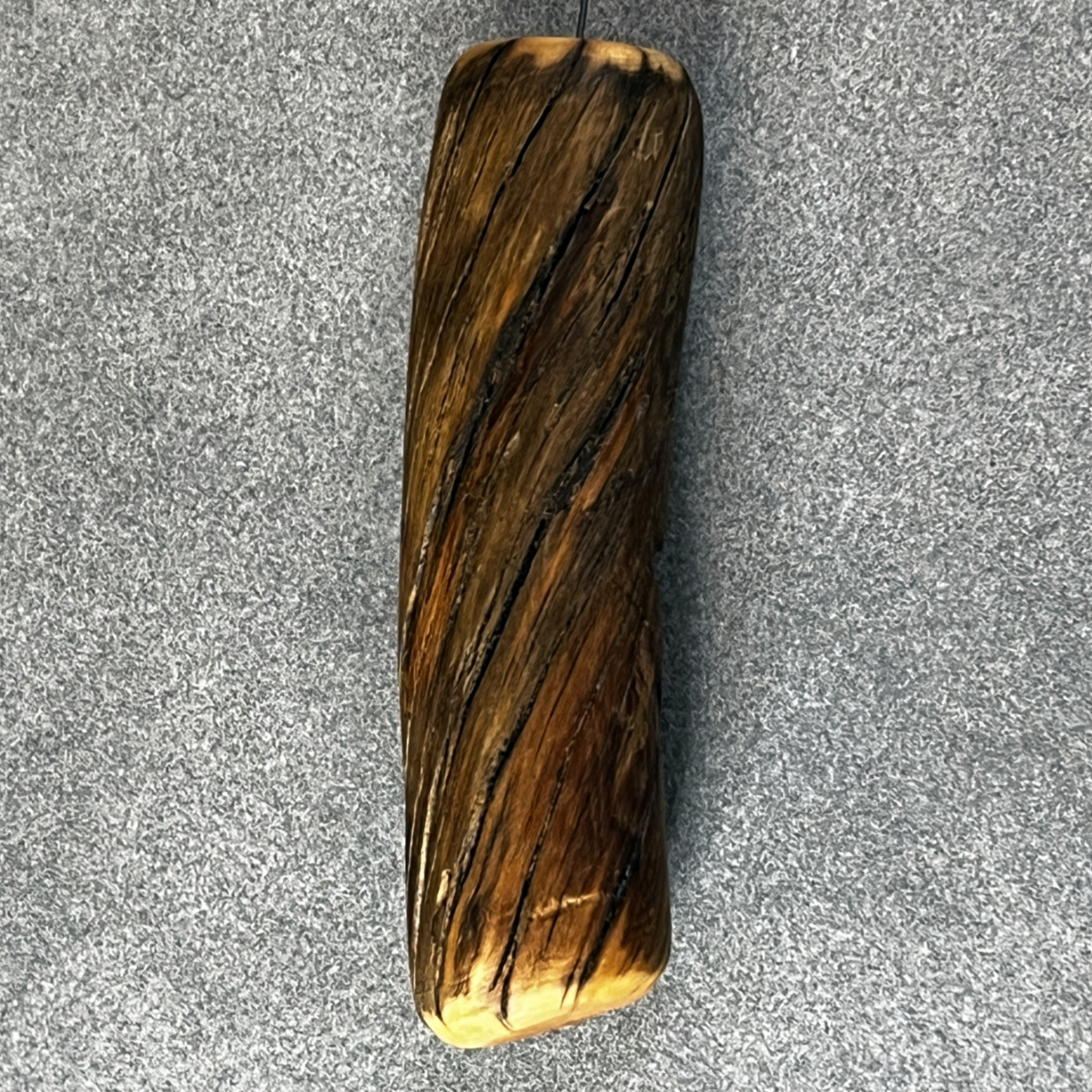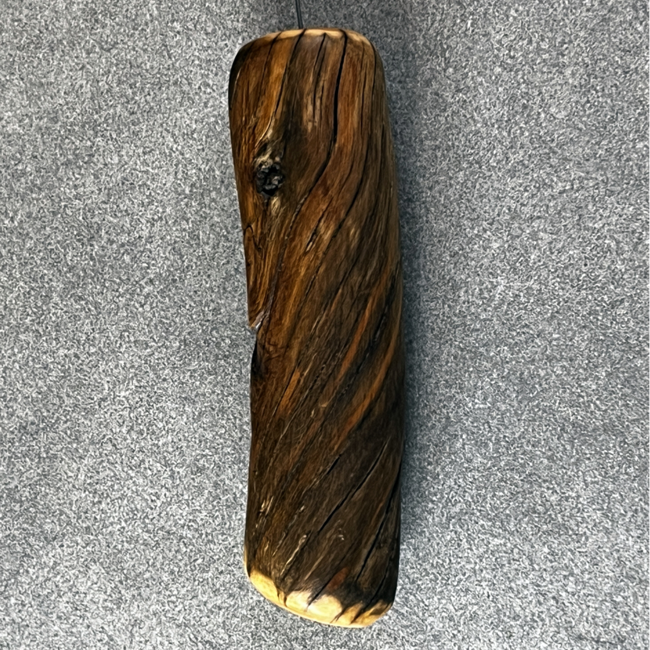 Diese Einhandrute besitzt einen sehr sanft gebogenen Griff aus einem gedreht gewachsenen Ast eines Nadelbaumes, ein besonderes Fundstück aus den Tiroler Bergen. Das Holz wurde sorgfältig geschliffen, um die gedrehte Struktur achtsam herauszuarbeiten, und mit reinem Leinöl und einer hellen Mischung aus Bienen- und Carnaubawachs behandelt – biologisch und lebensmittelecht. Es schützt das Holz, betont die Maserung und schafft eine matte, widerstandsfähige Struktur.