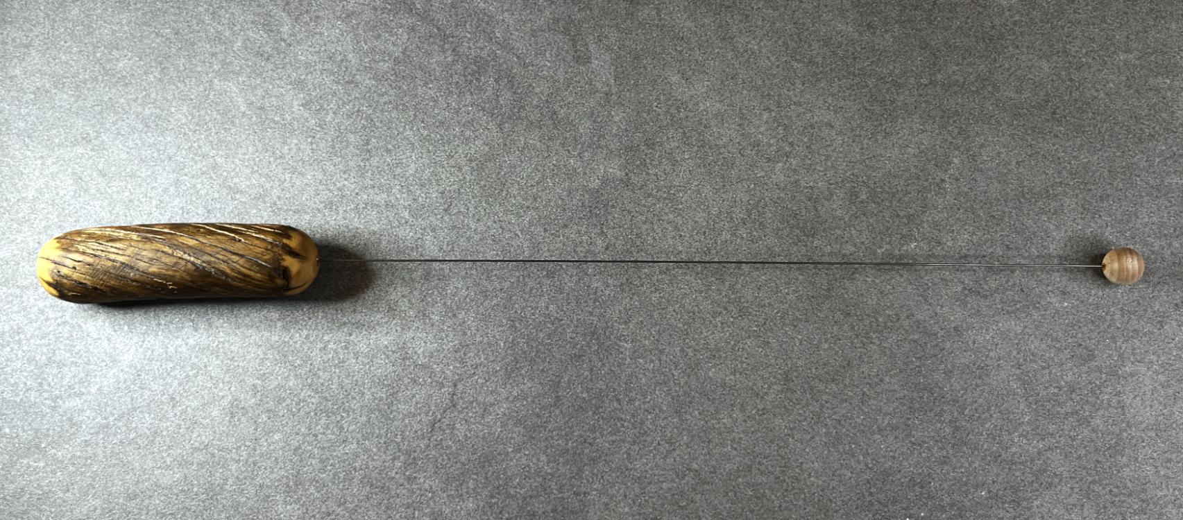 Die Tensorspitze besteht aus einer fein geschliffenen, unbehandelten Buchenholzkugel (ca. 15–16 mm Durchmesser) – das sorgt für ein klares, stabiles Schwingverhalten.