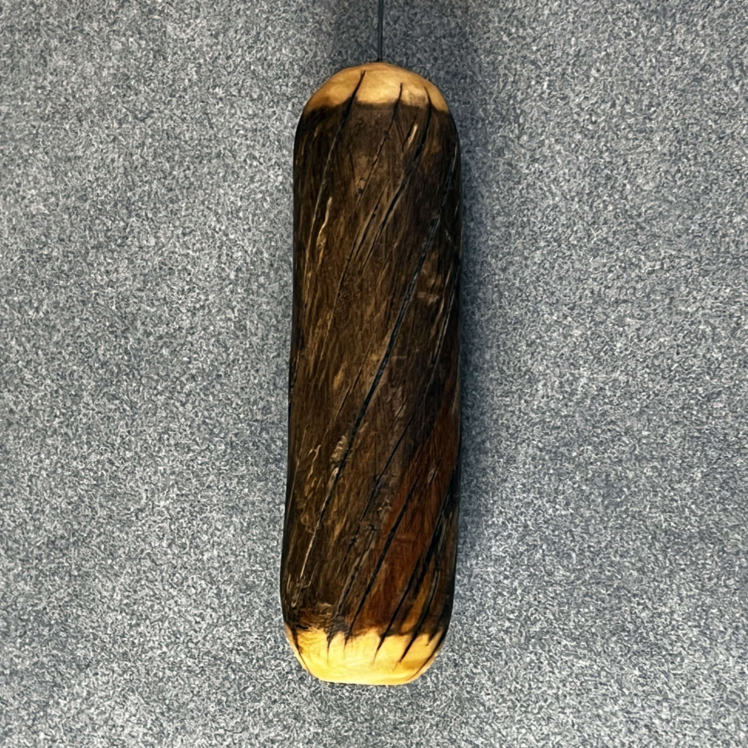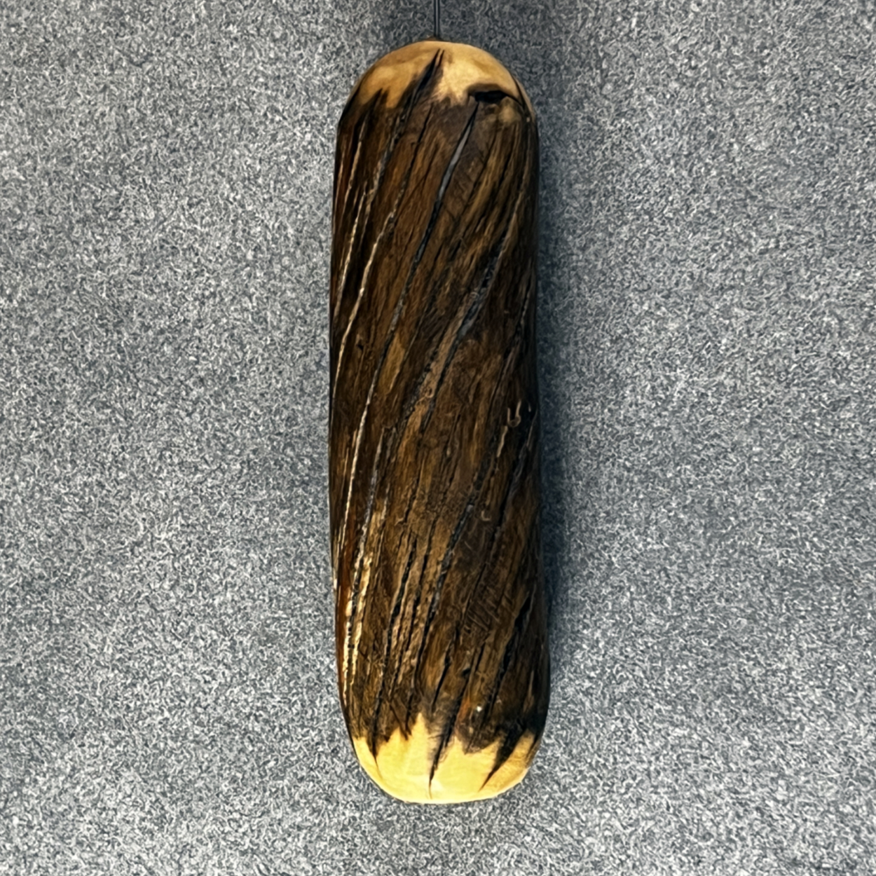 Der Griff dieser Einhandrute stammt von einem gerade gewachsenem, aber in sich extrem gedrehtem Ast eines Nadelbaums, der in den Bergen Tirols gewachsen ist. Ein besonderes, energetisch spannendes Fundstück, das uns ein paar sehr schöne Griffe beschert hat. Um die faszinierende Struktur des gedrehten Holzes gut herauszubringen, wurde der Griff achtsam geschliffen und in diesem Fall mit einer Mischung aus Bienen- und Carnaubawachs behandelt.